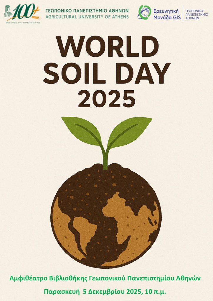 World Soil Day 2025 Το Γεωπονικό Πανεπιστήμιο Αθηνών τιμά τη ζωτικής σημασίας λειτουργία του εδάφους Κάθε χρόνο, στις 5 Δεκεμβρίου, η διεθνής κοινότητα γιορτάζει την Παγκόσμια Ημέρα Εδάφους, μια ημέρα αφιερωμένη στην ανάδειξη της καθοριστικής σημασίας του εδάφους για τη ζωή, τα οικοσυστήματα και το μέλλον του πλανήτη. Το φετινό σύνθημα, «No Soil, No Future», […]